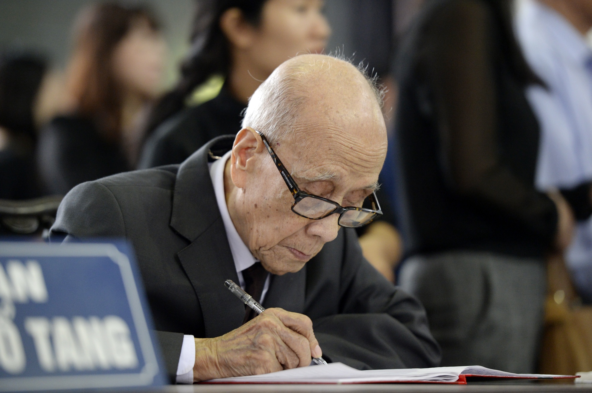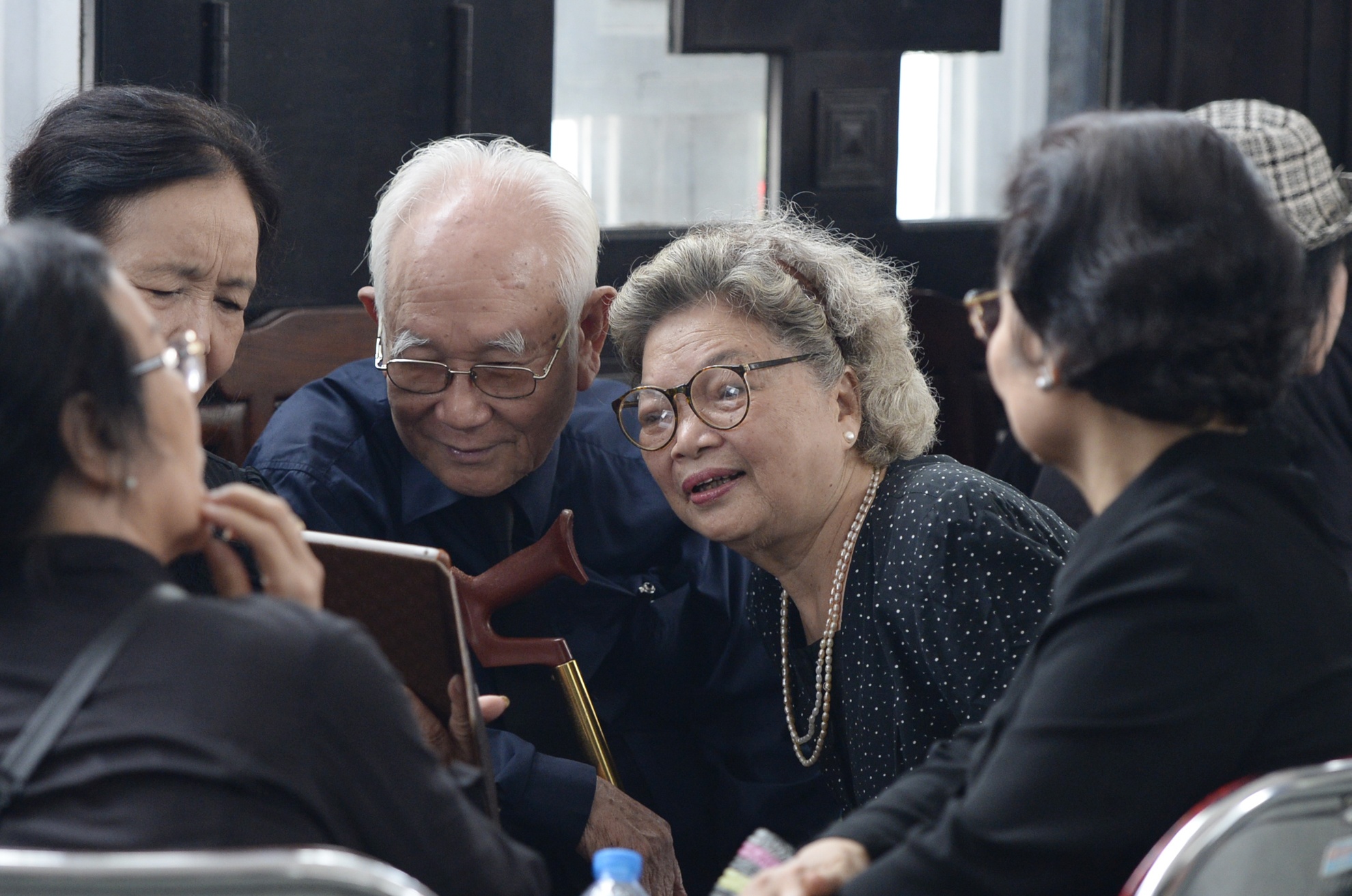 Dù tuổi cao sức yếu song giáo sư Vũ Khiêu vẫn tới nói lời từ biệt với NSND Đình Quang.