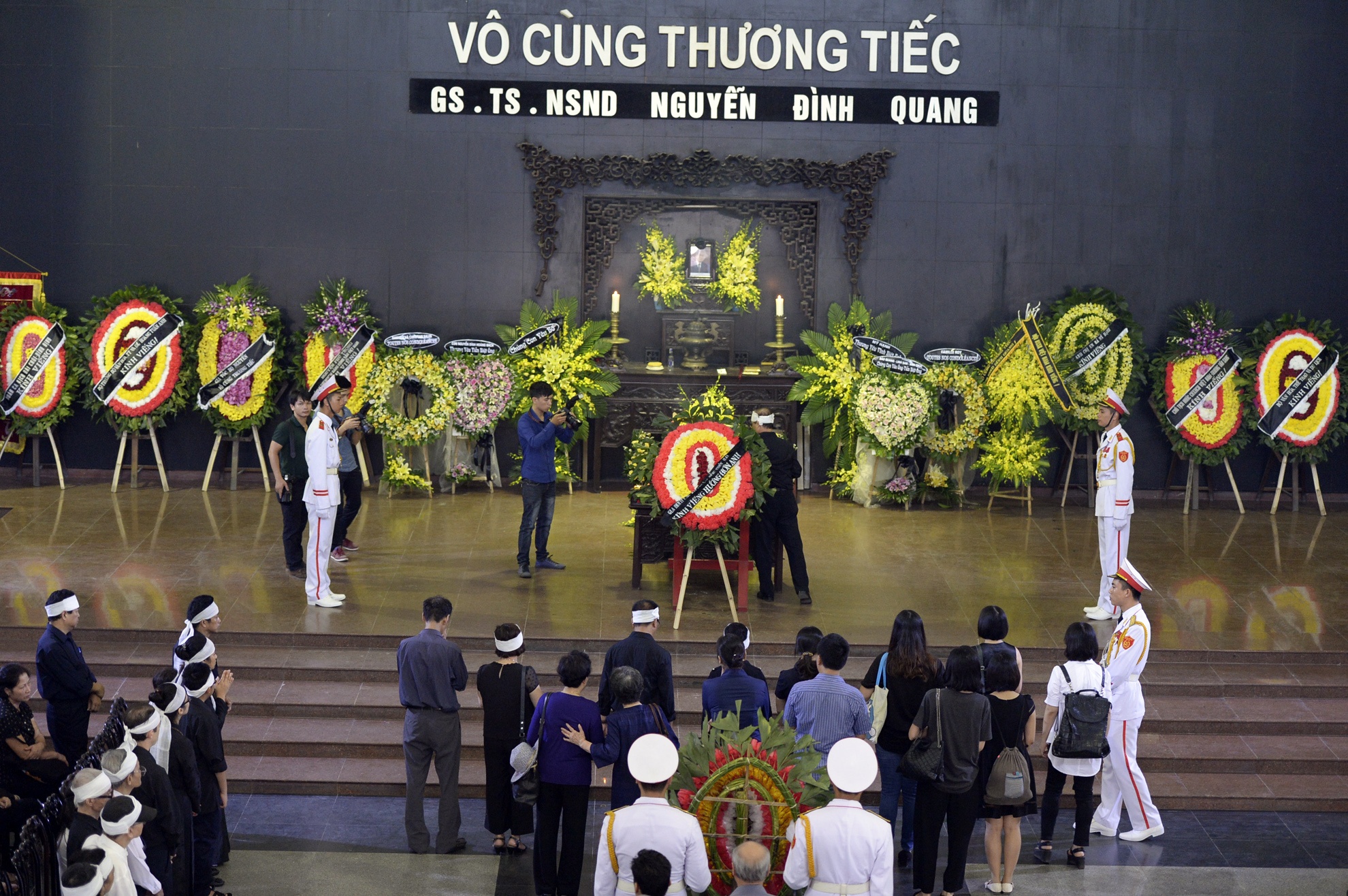 7h30, ngày 16/7, lễ viếng Giáo sư, NSND Nguyễn Đình Quang diễn ra trong không khí trang nghiêm tại nhà tang lễ Bộ Quốc phòng. Người thân, bạn bè, các thế hệ học trò đã tới tiễn đưa nghệ sĩ về với đất mẹ. Giáo sư Đình Quang là hiệu trưởng đầu tiên của Phân hiệu kịch nói và Trường Đại học Sân khấu điện ảnh với những học trò lừng danh như NSND Trọng Khôi, NSND Doãn Hoàng Giang, NSND Đoàn Dũng, NSƯT Minh Ngọc, NSND Thế Anh, NSƯT Mỹ Dung, NSND Doãn Châu…
