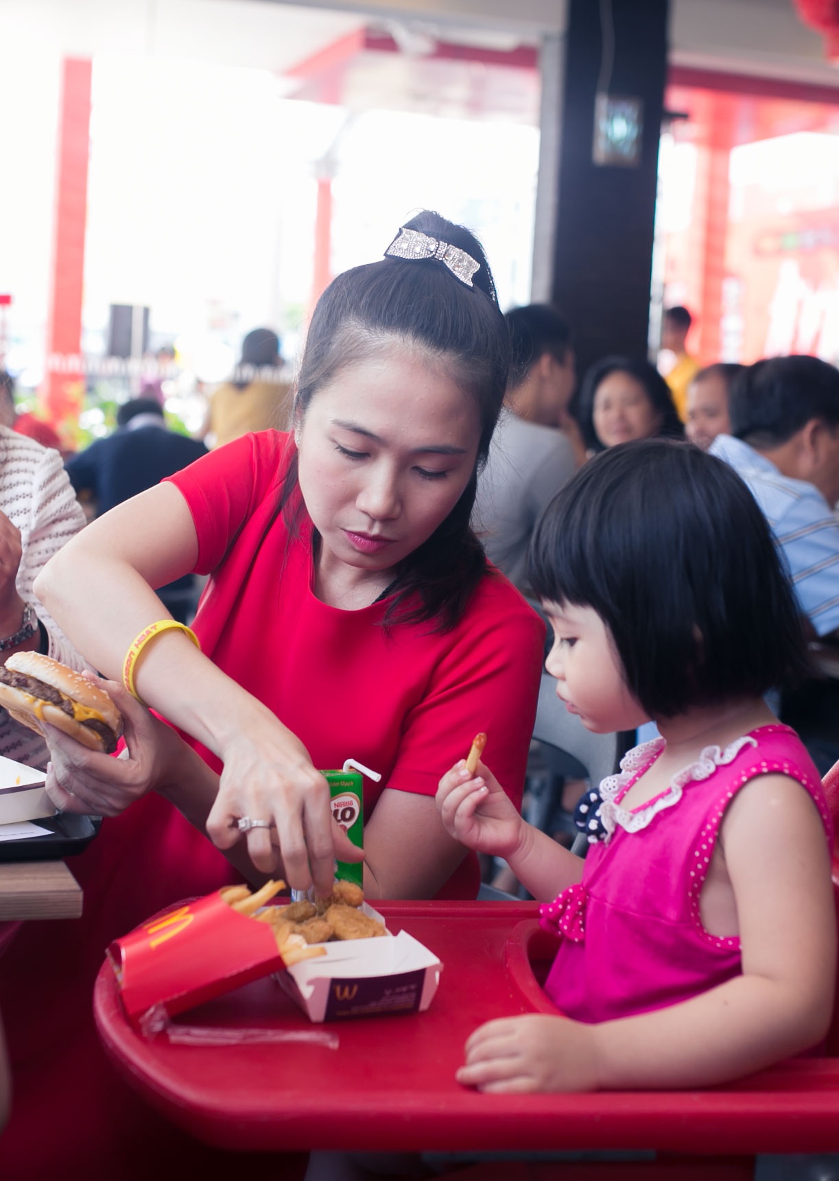 | Với kinh nghiệm làm mẹ khá lâu, Thanh Thảo tỏ ra ân cần chăm sóc các em nhỏ có mặt trong ngày hội gia đình. |