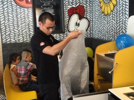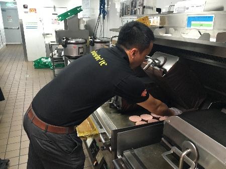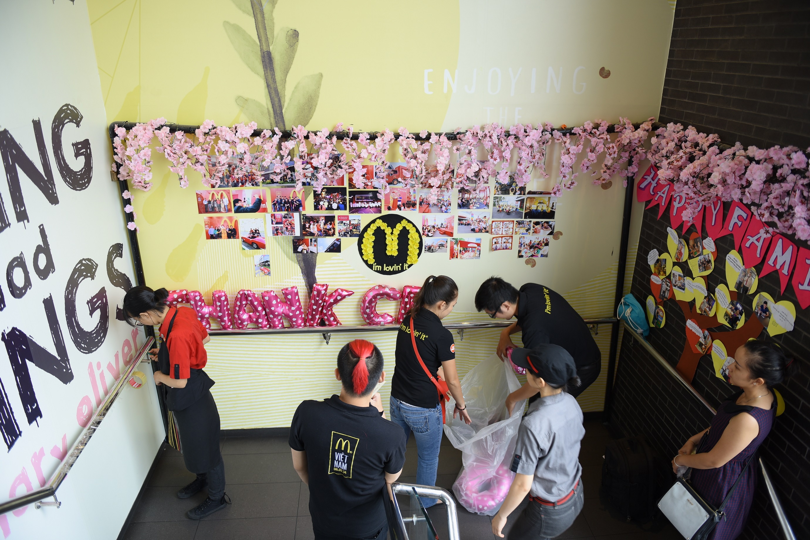 Anh Thắng, IT Manager (phụ trách mảng IT) đảm nhận nhiệm vụ dọn rác tại nhà hàng McDonald’s Siêu thị Sài Gòn vừa khai trương. |