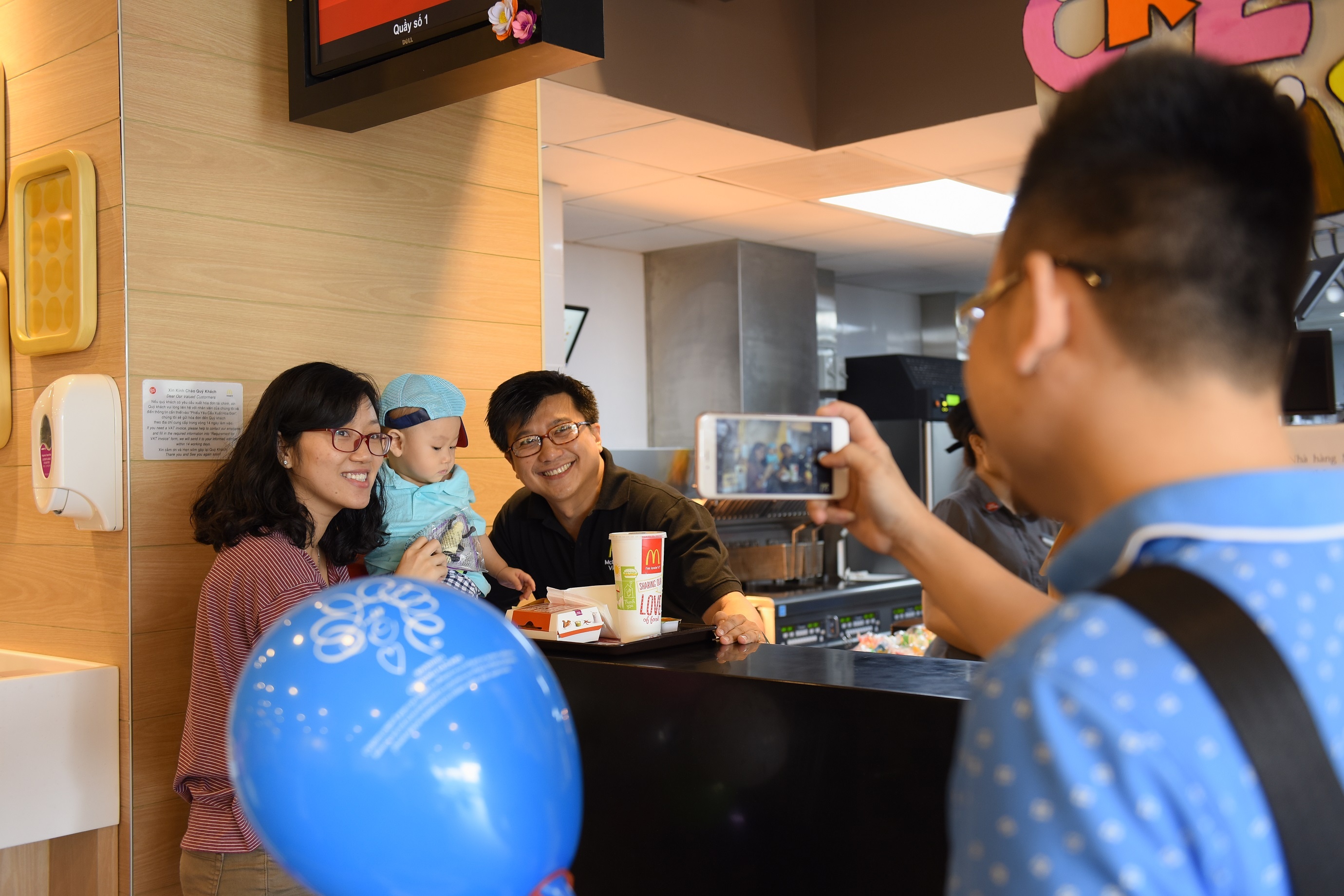 Nhiều khách hàng hào hứng khi được chính Chủ tịch McDonald’s Việt Nam phục vụ tại nhà hàng. |