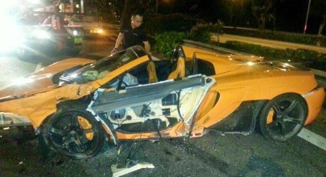 | Người lái chỉ bị một vết thương nhỏ sau tai nạn. Đây là vụ tai nạn xe McLaren 650S đầu tiên được nghi nhận trên thế giới. |