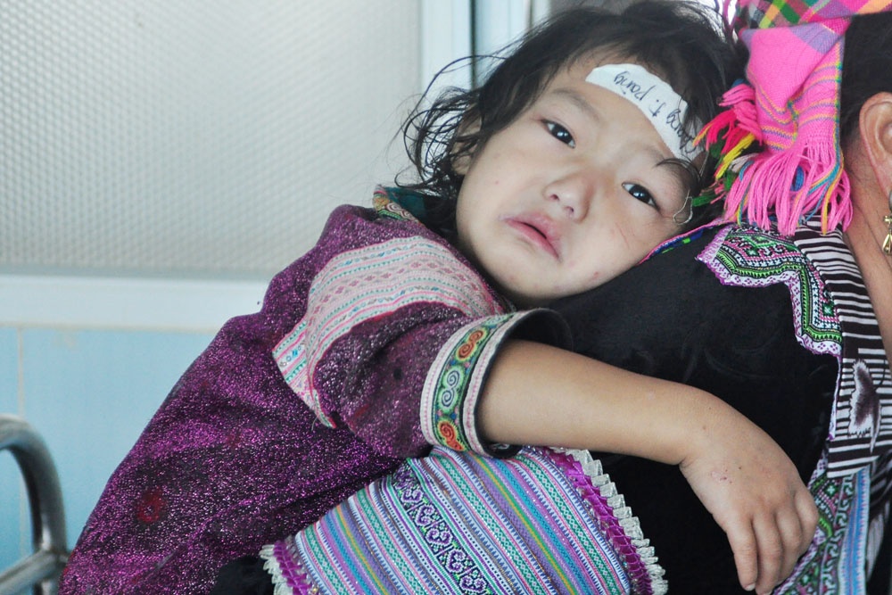 | Cháu Chang Thị Pàng (2 tuổi) nạn nhân nhỏ tuổi nhất trong vụ lật cầu treo Chu Va vẫn đang trong tình trạng hoảng loạn, liên tục khóc. |