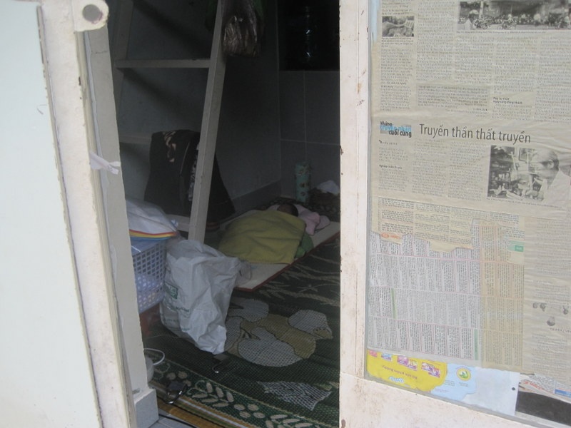 | Căn phòng trọ của vợ chồng anh Hên - chị Tâm. |