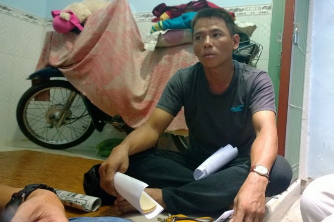 | Anh Thuấn - người tự nhận là cha bé Huy với mớ hồ sơ tìm cách nhận lại con. |