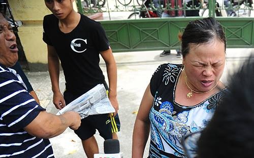Trong khi bà Oanh đang thể hiện sự bức xúc của mình thì một người trong gia đình lao đến, cầm tờ báo đánh thẳng vào mặt kèm theo lời khuyên đi về. Người đàn ông kéo mạnh bà Oanh sang bên kia đường, về phía chiếc ô tô đang chờ sẵn nhưng bà không chịu, cố đứng nói rất nhiều về việc con mình bị oan ức. Phải mất một lúc lâu can ngăn, mẹ của tiền vệ Trần Mạnh Dũng mới chịu lên xe về nhà.