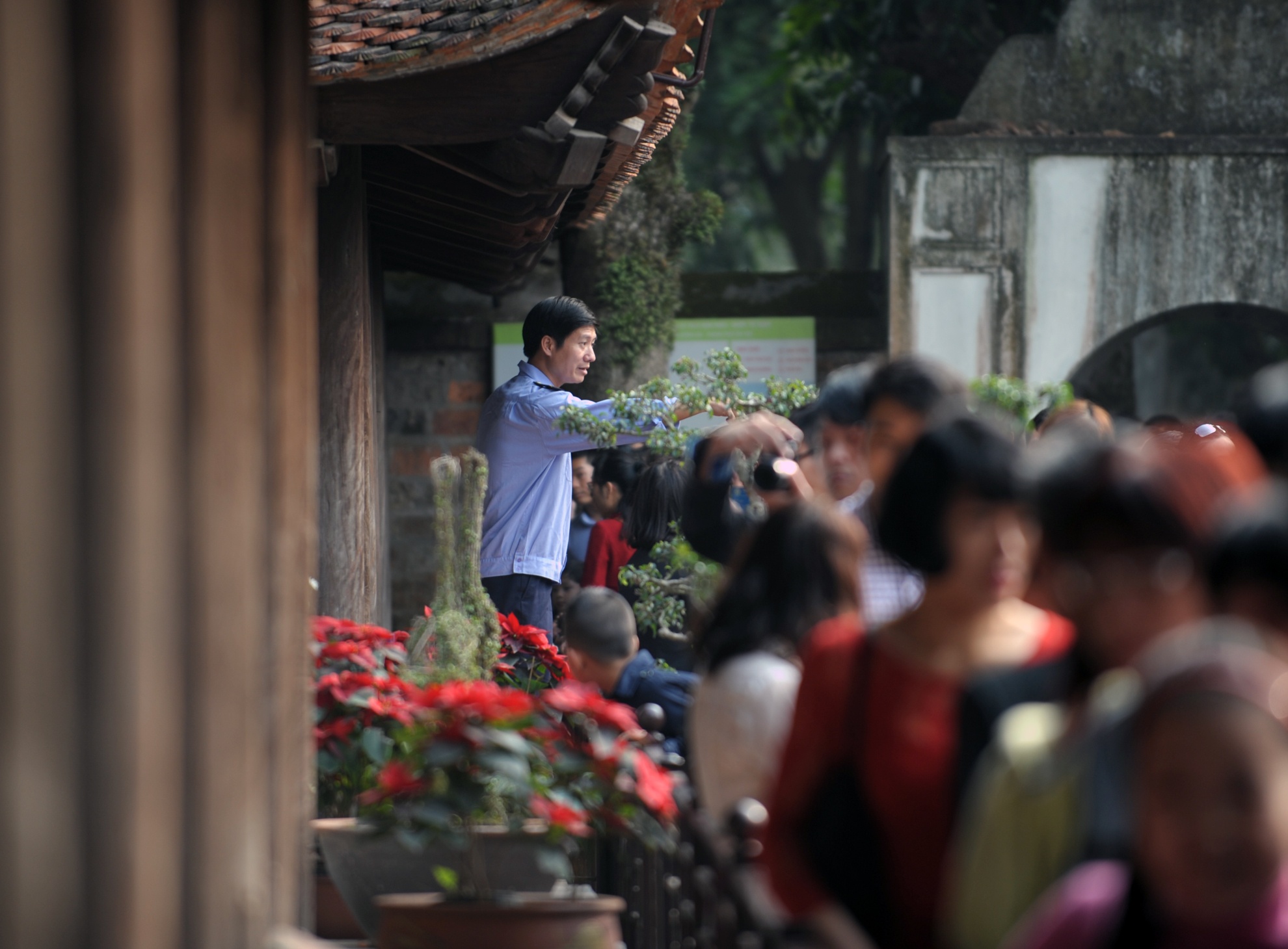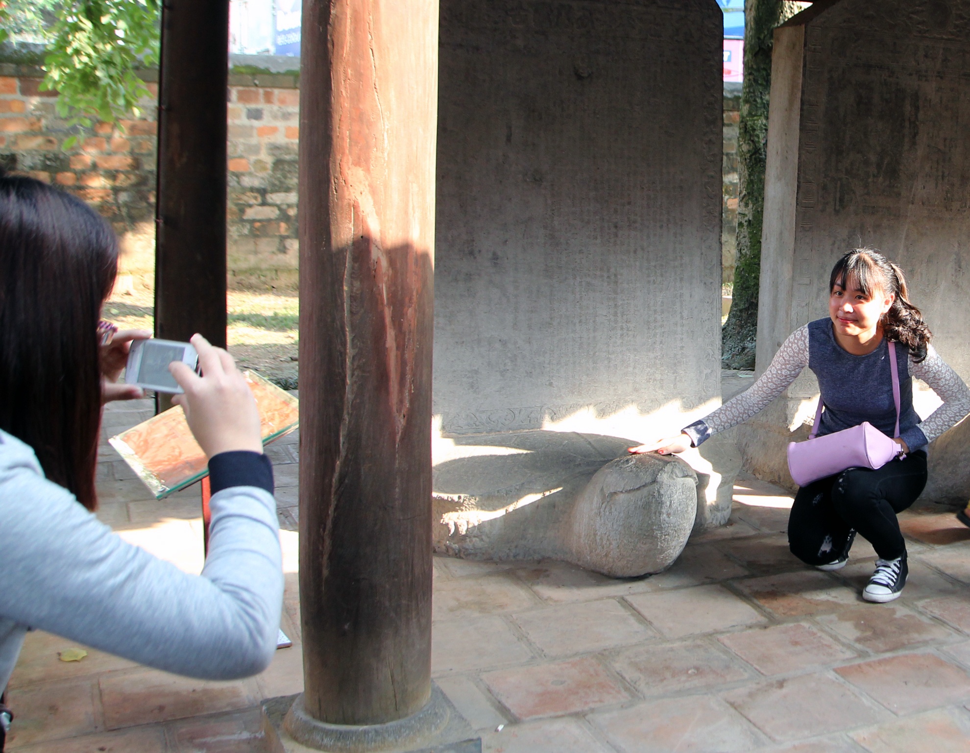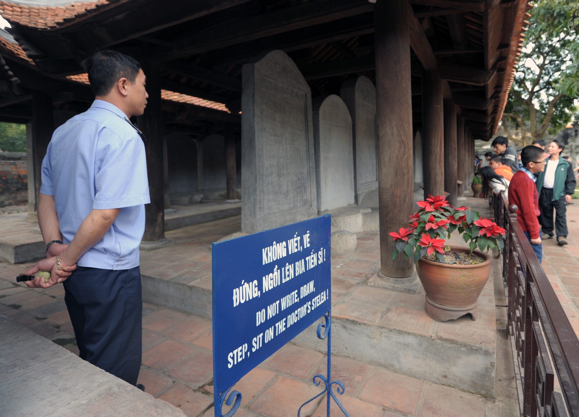 Theo những nhân viên bảo vệ ở đây, dịp thi đại học và Tết nguyên đán là lúc nơi đây lộn xộn, nhiều người thiếu ý thức trong việc bảo vệ di tích lịch sử văn hóa. 'Thời điểm thi Đại học còn có sự hỗ trợ của lực lượng sinh viên tình nguyện nhưng tầm này thì bó tay', anh nói.