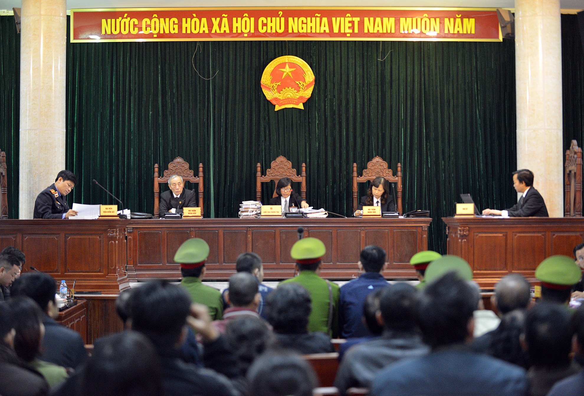 | Chủ tọa đọc quyết định khai mạc phiên tòa. |