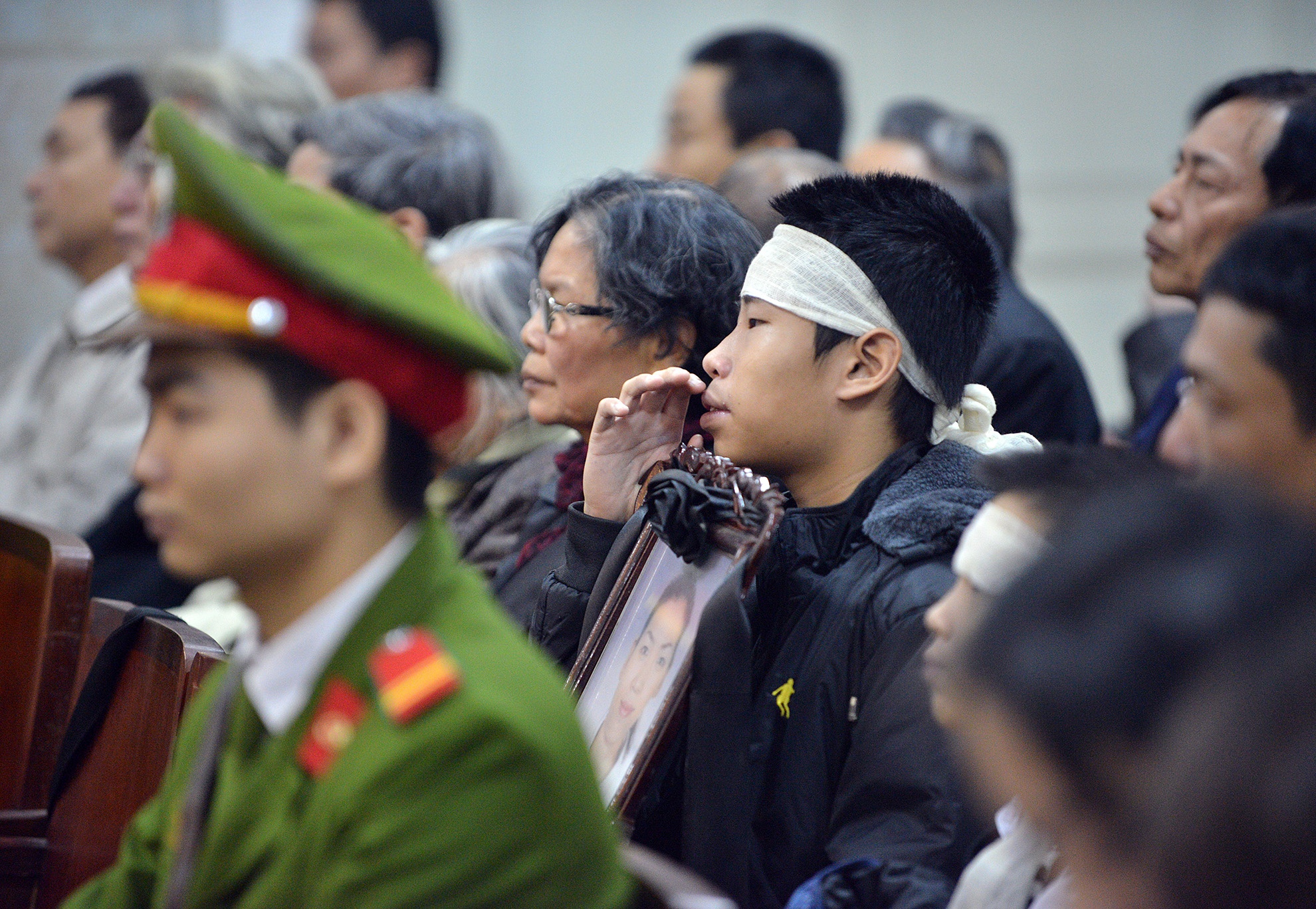 | Người thân nạn nhân chăm chú theo dõi phiên xử. |