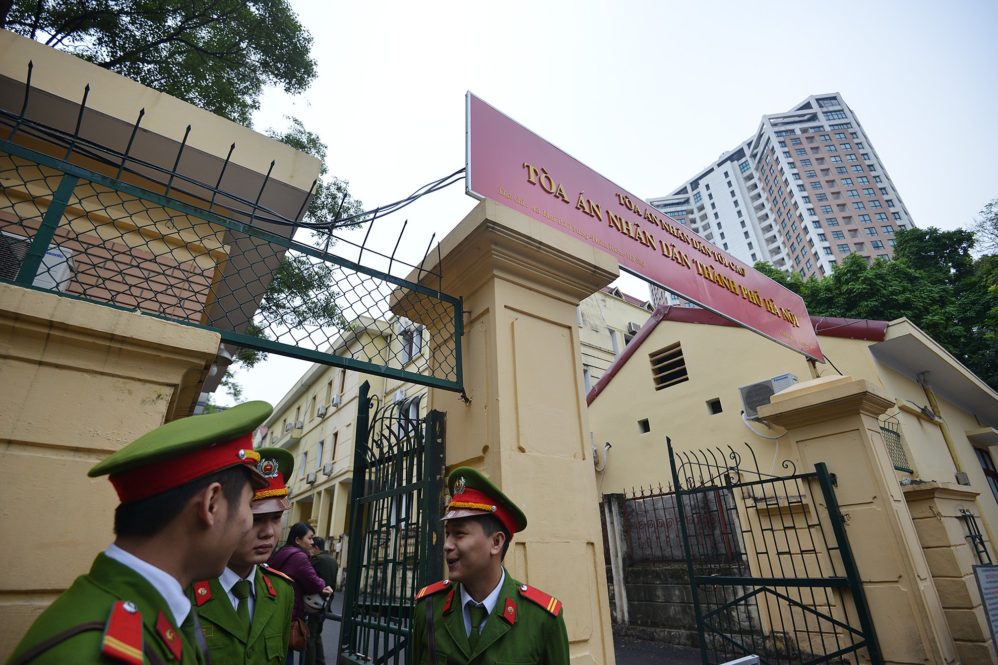 | Từ 6h sáng 4/12, cổng ra vào TAND TP.Hà Nội đã được lực lượng công an giám sát chặt chẽ. Chỉ những người có giấy triệu tập, hoặc có đăng ký danh sách dự tòa mới được phép qua lại. |