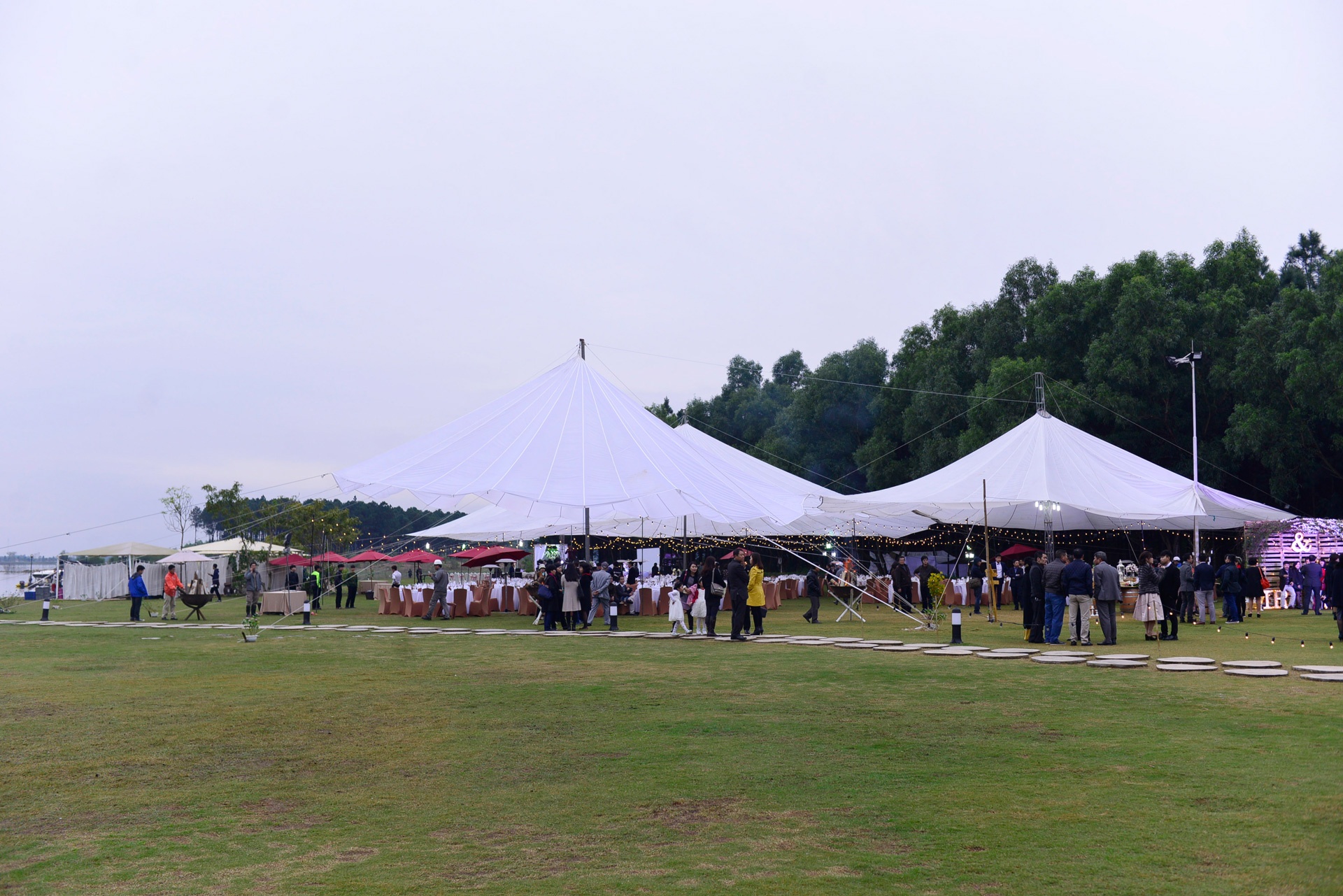 | Hôn lễ của Văn Quỳnh và ca nương Kiều Anh được tổ chức tại một resort ở Vĩnh Phúc. Thời tiết Hà Nội và Vĩnh Phúc hiện khá lạnh nhưng may mắn là trời tạnh ráo, không mưa nên đám cưới tổ chức ngoài trời của nữ ca sĩ 9X càng hoàn hảo. |