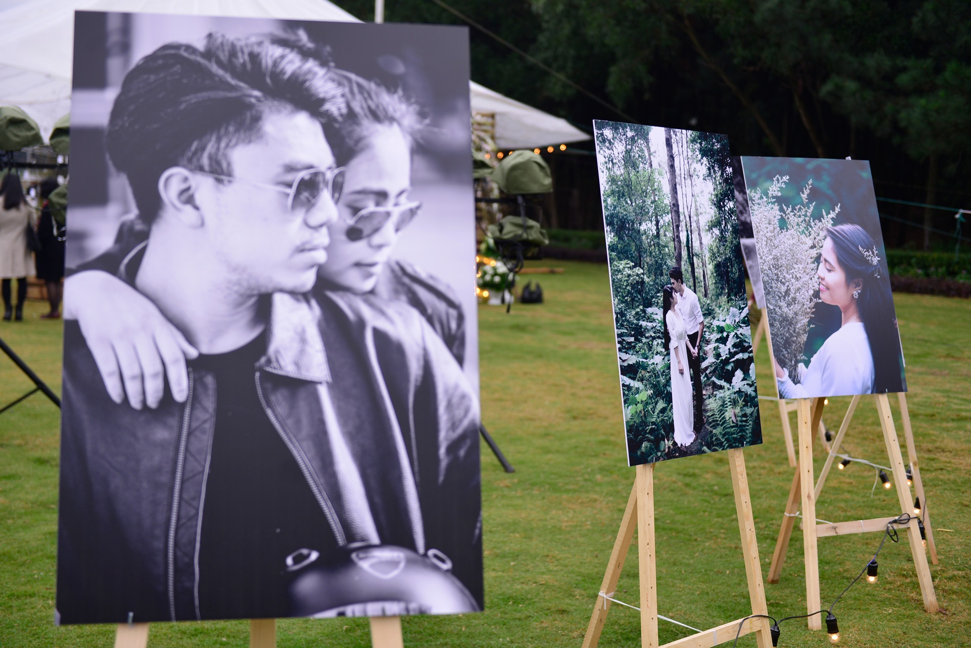 | Hôn trường được trang trí với hai những bức ảnh cưới chụp theo nhiều phong cách khác nhau của cặp đôi. |