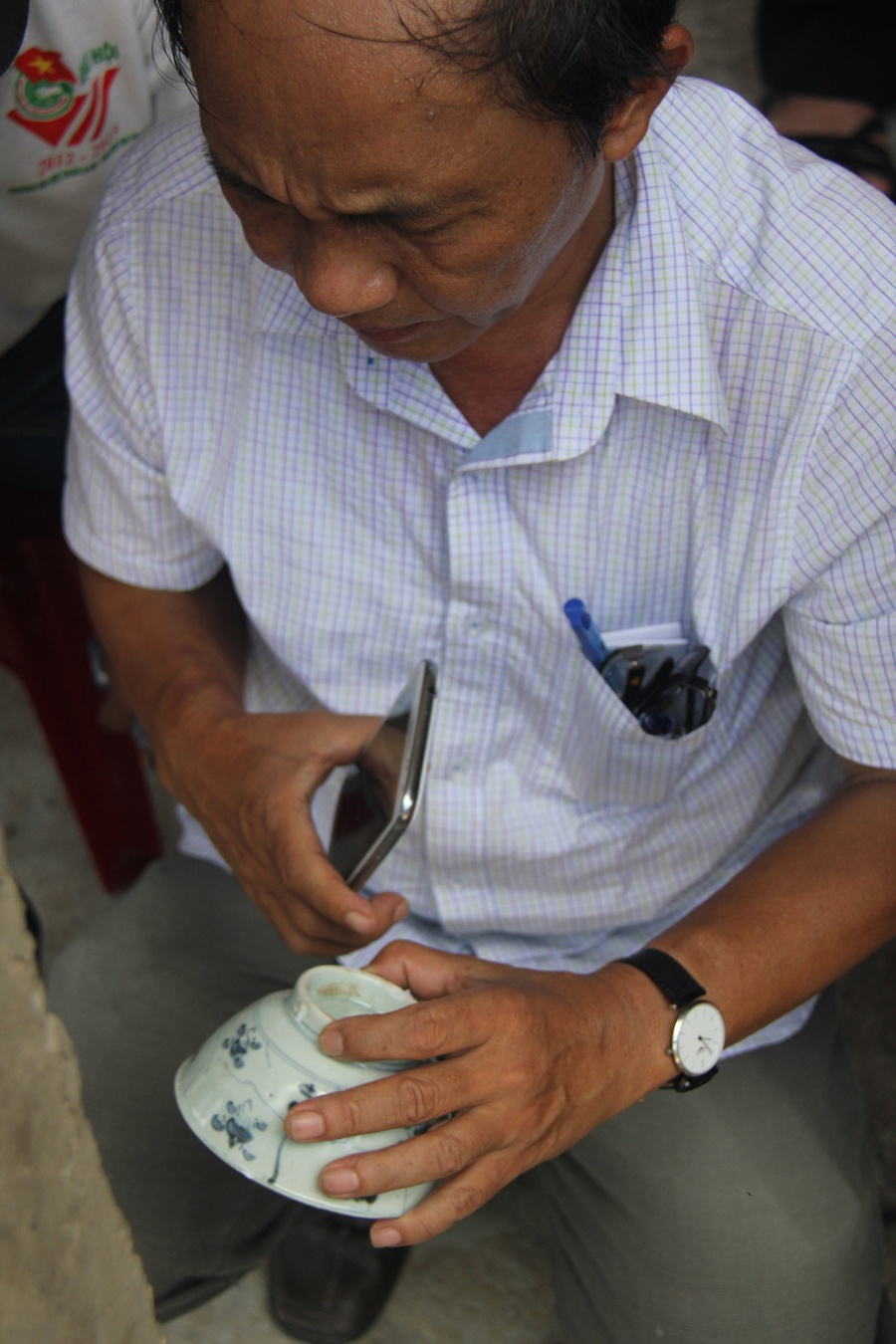Đến trưa 16/8, cùng với việc giải tán hàng chục tàu cá của ngư dân địa phương vây quanh con tàu cổ vừa phát hiện vào rạng sáng cùng ngày, cơ quan chức năng đã thu được khá nhiều cổ vật bị bể do các ngư dân trục vớt trái phép.