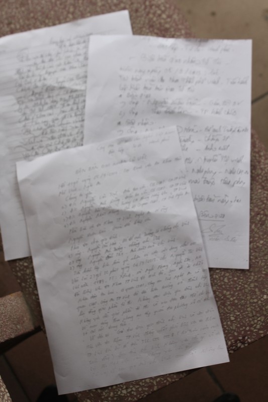 | Các giấy tờ, biên bản trong buổi làm việc giữa gia đình, phía bệnh viện và công an địa phương. |