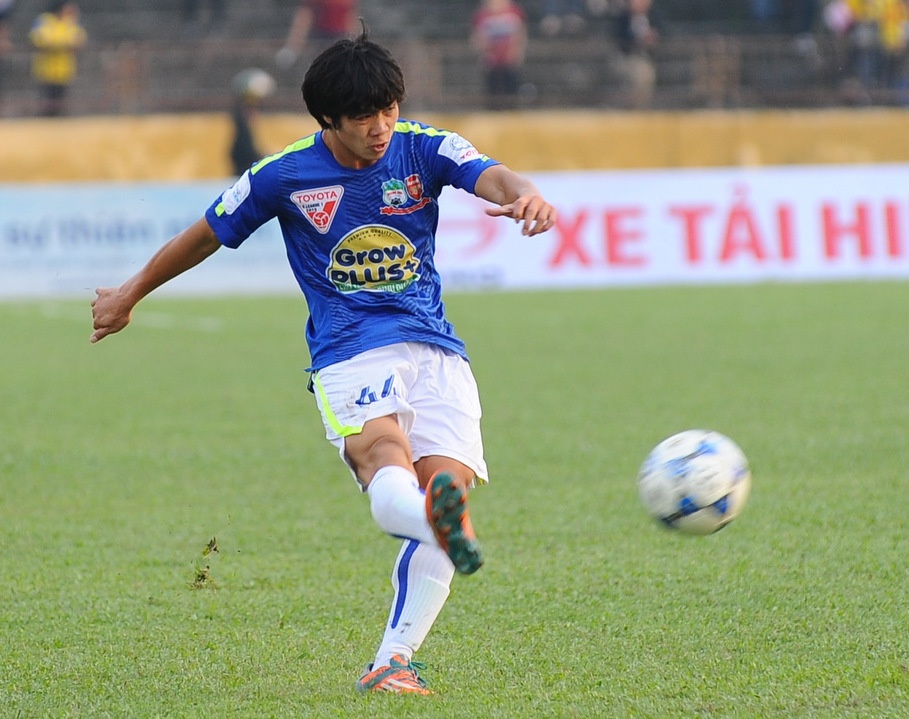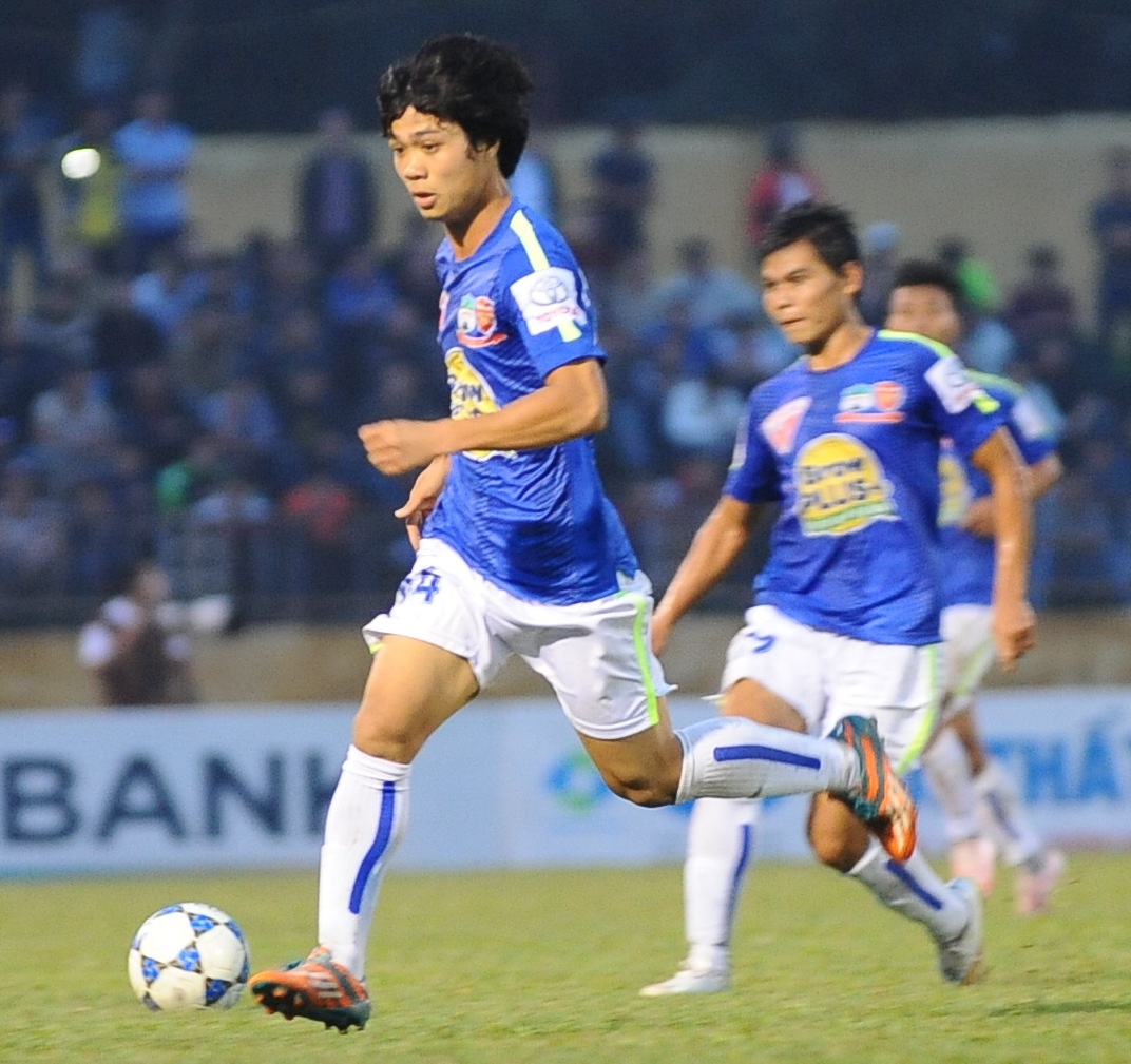 | Trong lần đầu tiên trở về sân Vinh với tư cách cầu thủ chuyên nghiệp, Công Phượng được bố trí đá chính trên hàng công của đội khách HAGL. |