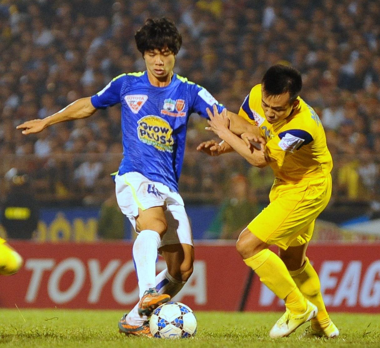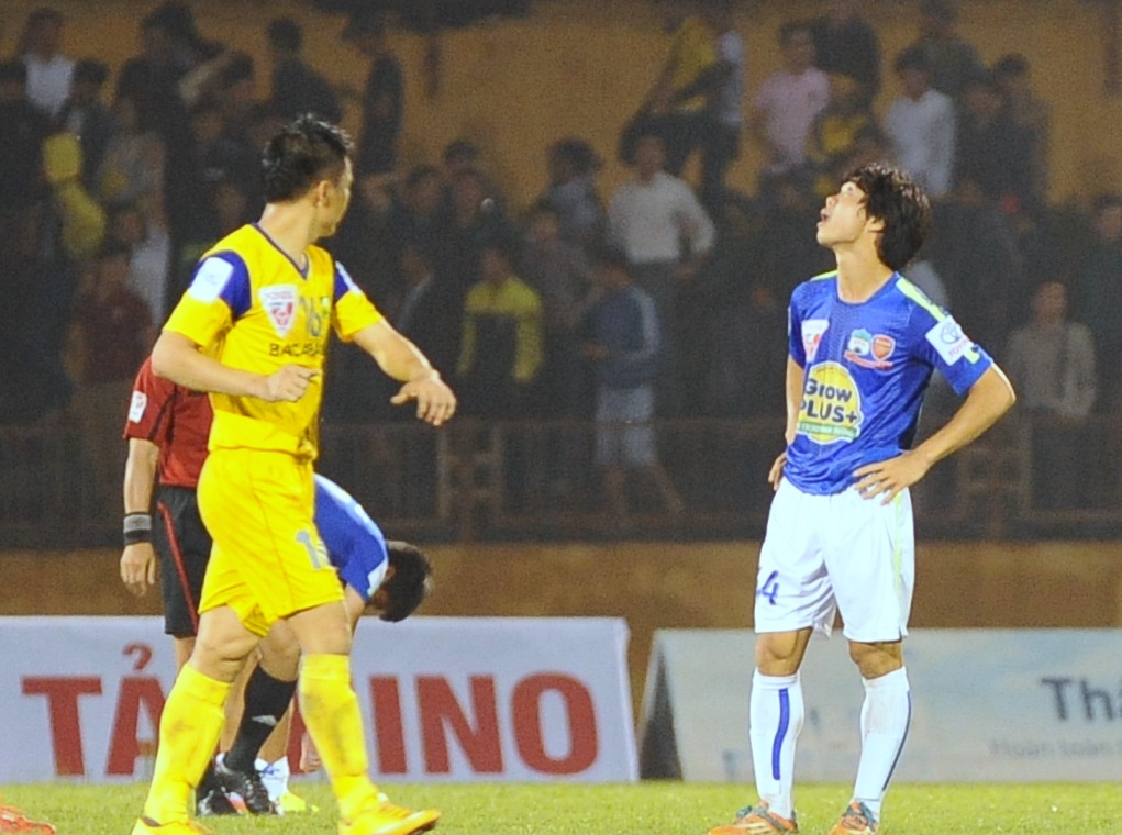 | 15 phút cuối trận đấu, Công Phượng thi đấu với 100% sức lực của mình. Nhưng đàn anh Minh Đức đã chỉ đạo hàng thủ SLNA vô hiệu hoá hầu hết các pha đi bóng và phối hợp của Công Phượng cùng các đồng đội.