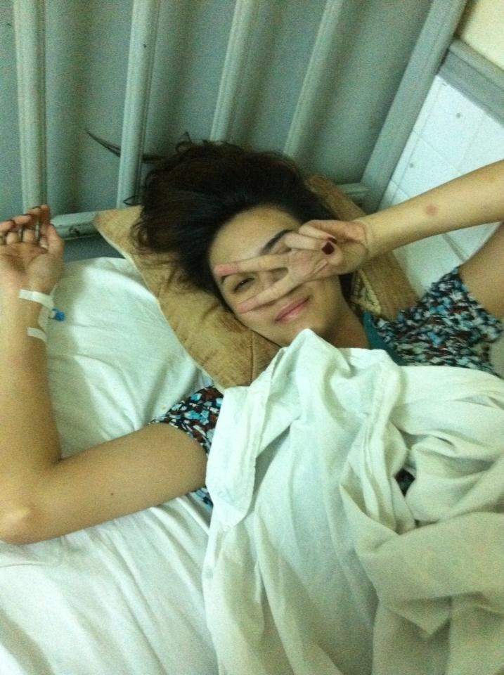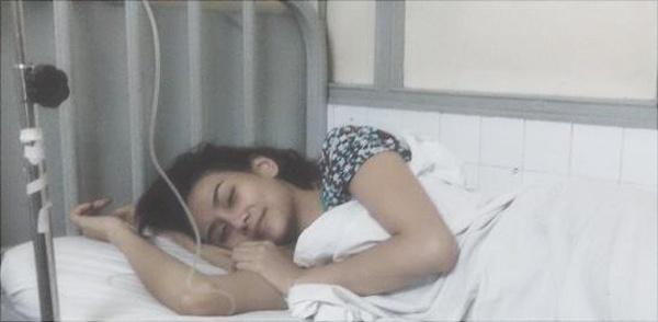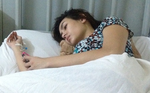 | Hoàng Yến trong phòng bệnh. |