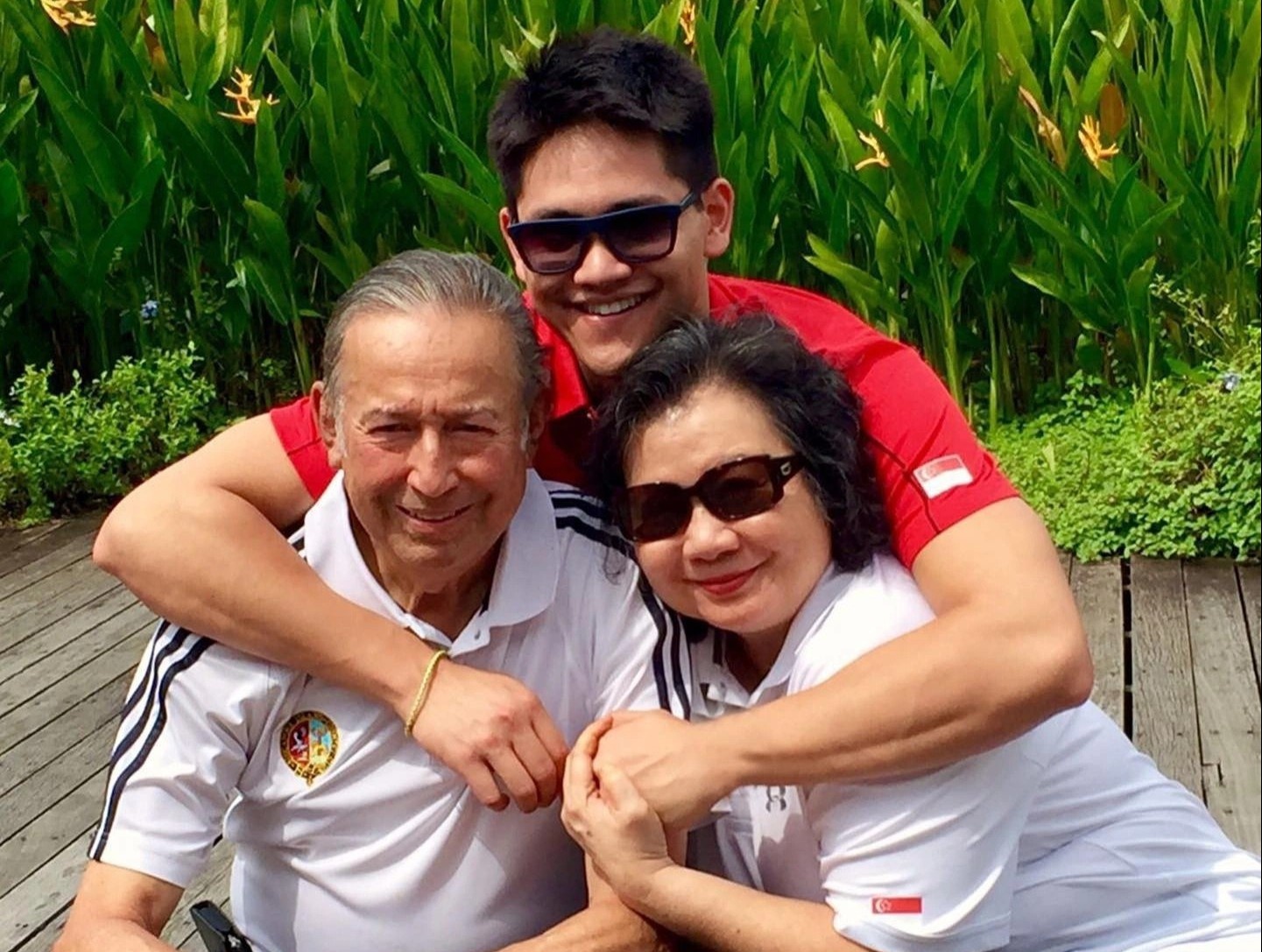 | Joseph Schooling bên cha mẹ. Bố Schooling qua đời vào cuối năm 2021 vì bệnh ung thư. |