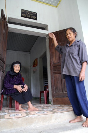 Mẹ Gần ngồi trước hiên nhà, phía trên đầu mẹ là tấm biển trang trọng “Nhà tình nghĩa”, trên tay mẹ còn cầm tấm biểu trưng “công ty Thiên Cầm tài trợ 30 triệu”. Năm nay mẹ cũng đã 103 tuổi, chẳng biết mẹ có đủ thời gian để đợi ngày có tiền để thanh thản ra đi không nữa?