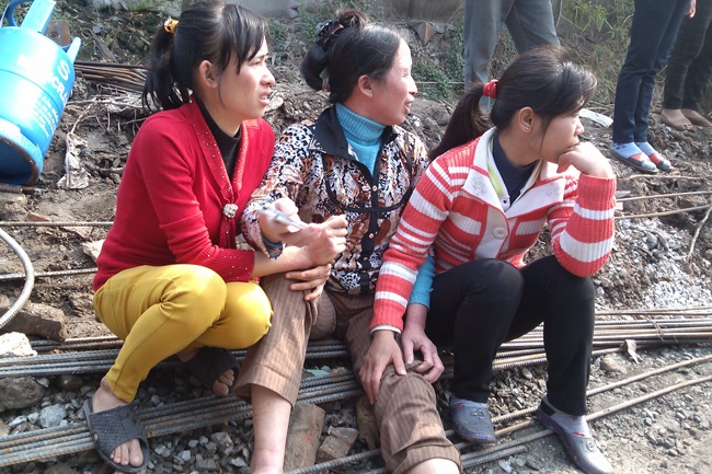 | Chị Nguyễn Thị Tuyết (giữa) ngồi ngóng tin con. |