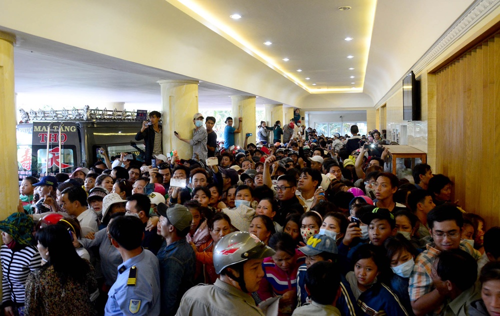 | Trước cửa phòng hỏa thiêu, người hâm mộ trèo tường, chen lấn tiễn đưa anh về cõi vĩnh hằng. |