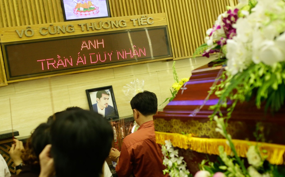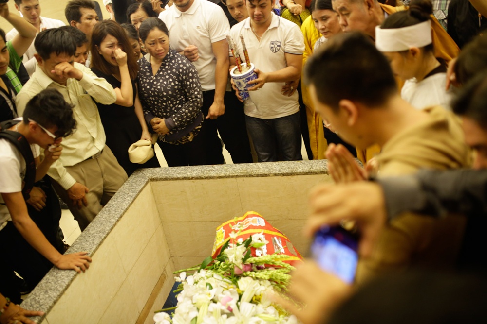 | Người thân òa khóc khi thi hài anh được chuyển xuống phòng hỏa thiêu. Duy Nhân trút hơi thở cuối cùng lúc 0h30’ ngày 7/5 tại bệnh viện Truyền máu Huyết học TP HCM sau hơn 6 tháng đấu tranh với căn bệnh ung thư máu. |
