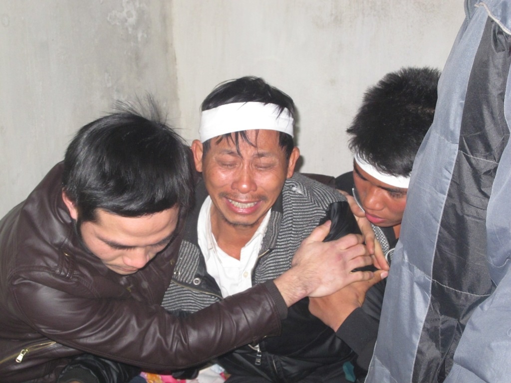 | Ông Phan Văn Hà, bố anh Hạnh khóc ngất khi đón thi thể con mình. |