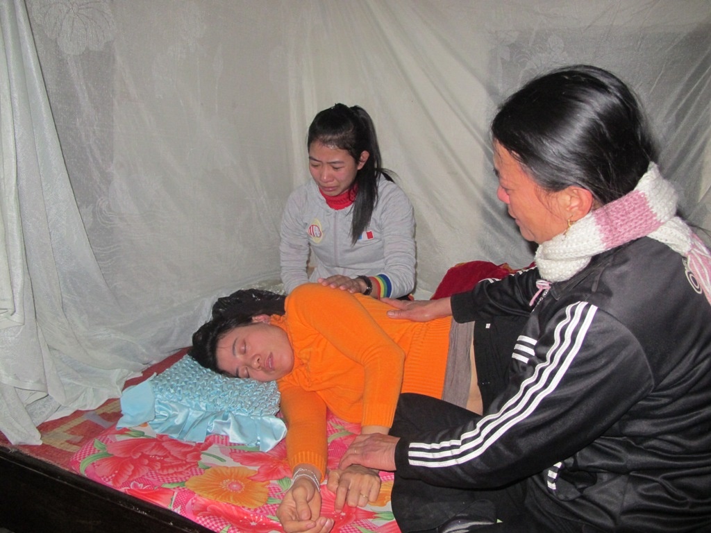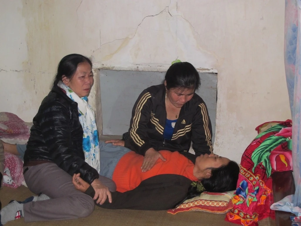 | Mẹ và vợ anh Hạnh bị ngất, phải nhờ sự chăm sóc của y tế và người dân. |