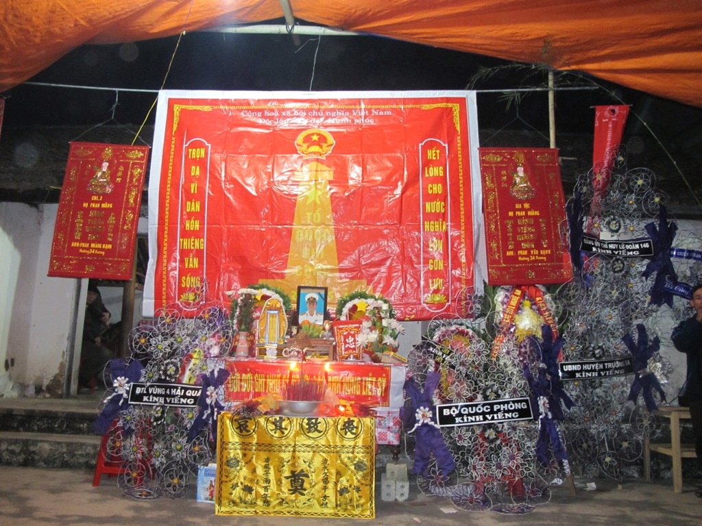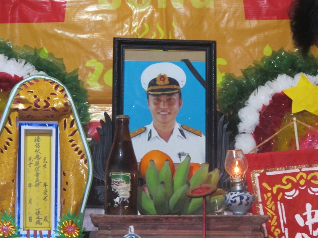 | Chính quyền địa phương sau đó đã lập bàn thờ, chuẩn bị lễ viếng cho chiến sĩ hy sinh tại Trường Sa. |