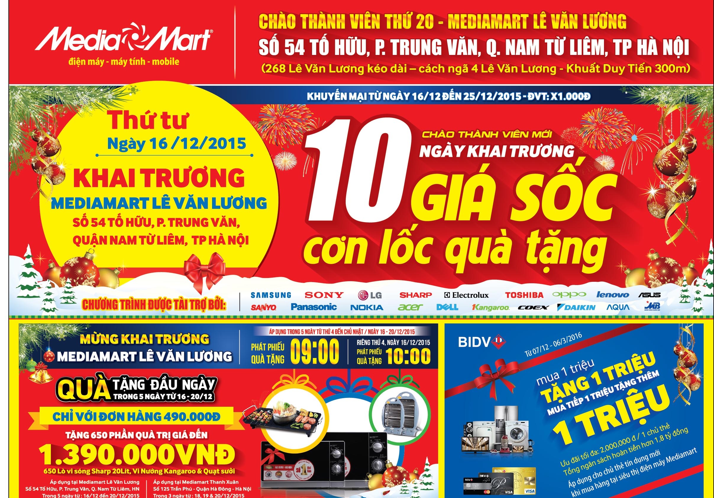 Nhân sự kiện khai trương siêu thị thứ 20 gần với dịp Noel và Tết dương lịch, điện máy MediaMart công bố chuỗi chương trình 10 ngày giá sốc cơn lốc quà tặng với nhiều ưu đãi hấp dẫn dành tặng khách hàng.