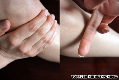 | Thả lỏng chân, nhẹ nhàng massage phần dưới đầu gối. |