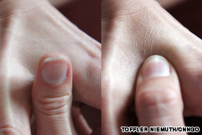 Nếu bạn cảm thấy đau đầu, sốt hay táo bón, hãy ấn vào huyệt ở khoảng giữa ngón trỏ và ngón cái của bàn tay trái bằng ngón tay phải và ngược lại. Những triệu chứng kể trên sẽ giảm. Chú ý, phương pháp này không áp dụng cho phụ nữ có thai.