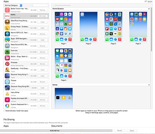 Để kết thúc việc thiết lập, đi đến góc dưới bên phải và click vào nút "Apply" để việc thay đổi được áp dụng lên iPhone. Hoặc "Revert" để hủy toàn bộ thiết lập đó. |