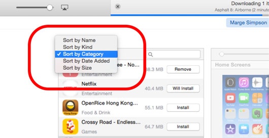Trong danh sách ứng dụng, iTunes sẽ cho chúng ta sắp xếp chúng theo tên, loại ứng dụng, kích thước, ngày cài đặt,... giúp người dùng tìm, cài đặt và sắp xếp ứng dụng dễ dàng hơn. Chọn Phân chia theo loại, iTunes sẽ sắp xếp ứng dụng theo kiểu ứng dụng chẳng hạn như: Ứng dụng giải trí, ứng dụng tin tức, ứng dụng điều hướng, trò chơi,... |