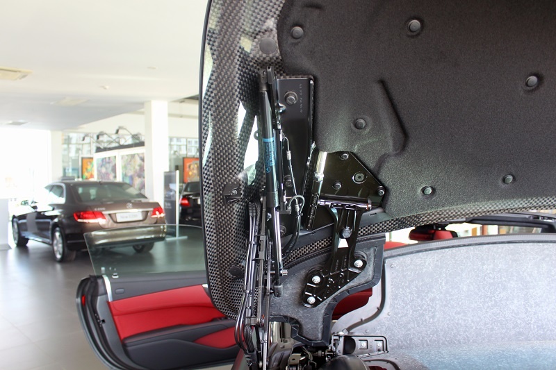 Mui được mở tự động thông qua cơ cấu thủy lực hiện đại. Bạn cũng có thể đóng mở mui bằng một công tắc màu đỏ gắn dưới cốp.