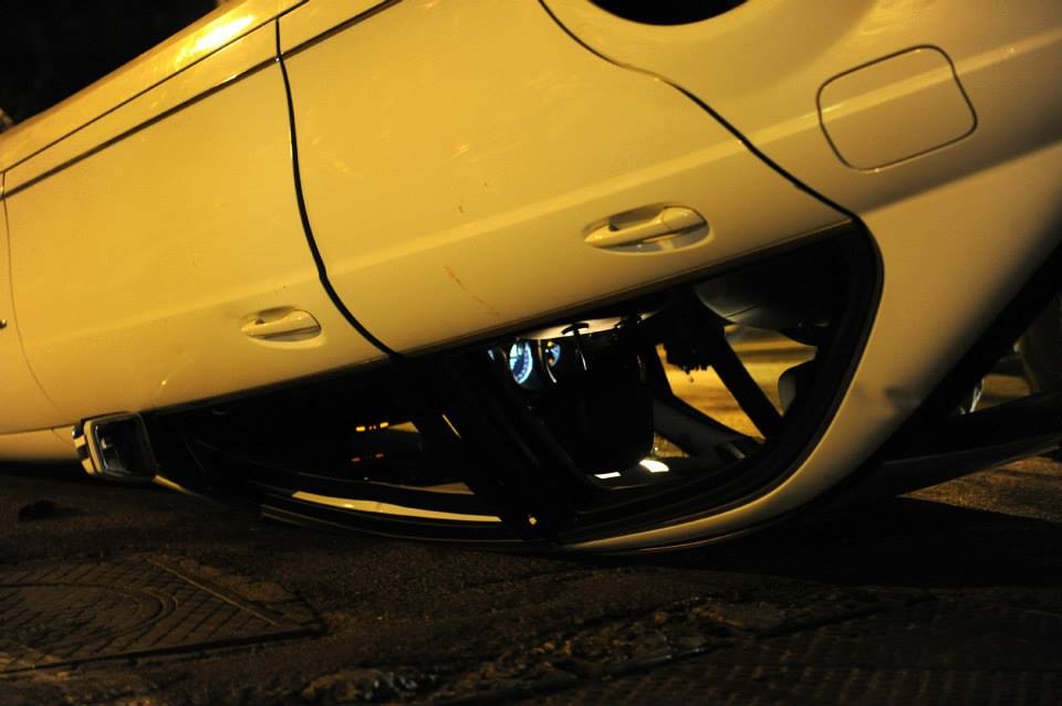| Các nhân chứng cho hay, do lái xe đánh lái tránh taxi 4 chỗ nên mất lái, leo lên vỉa hè rồi lật nhào. |