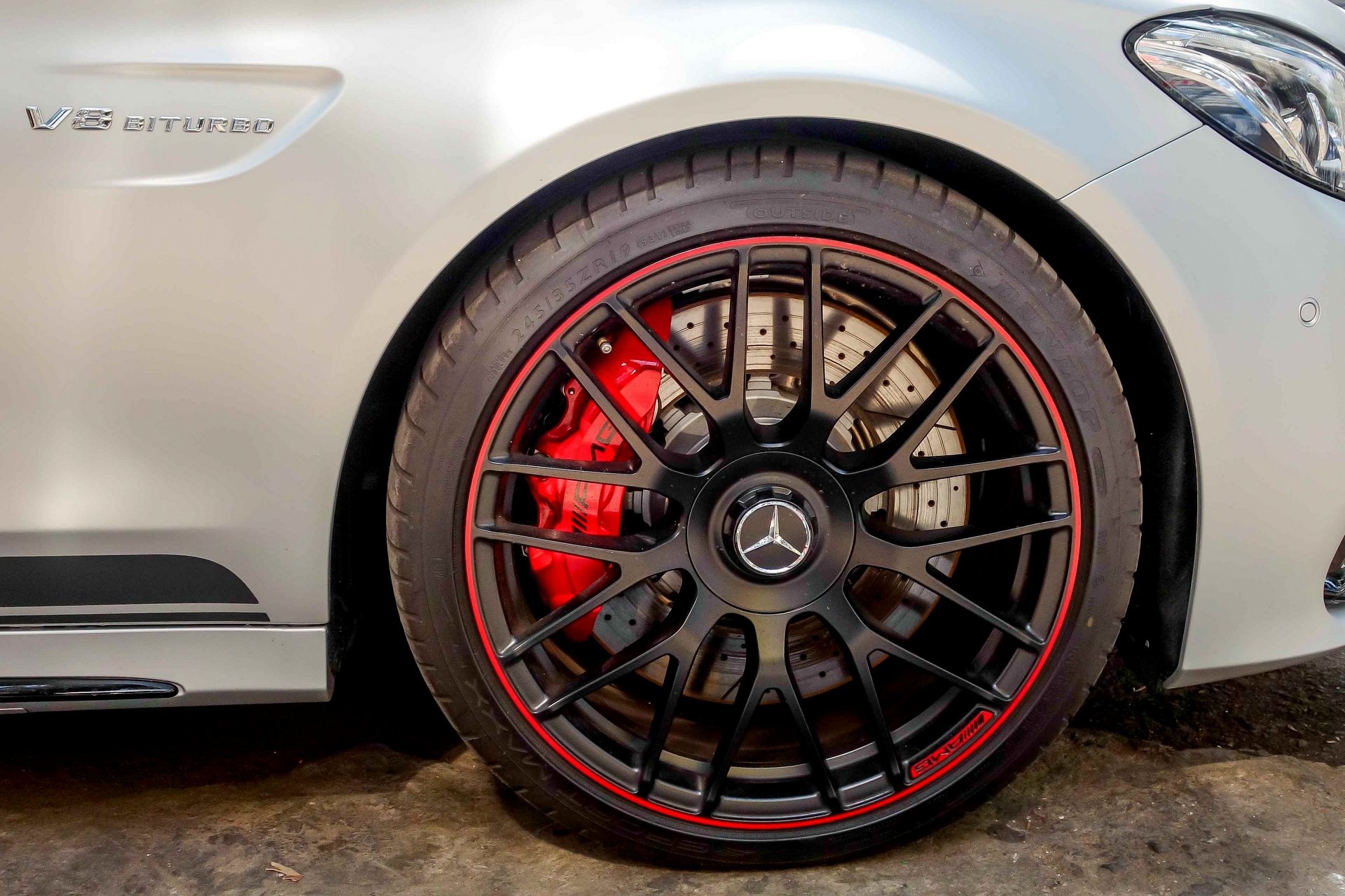 nh xe đường kính 19 inch có những kẻ chỉ đỏ nổi bật. Đây là đặc điểm phân biệt giữa bản Edition 1 và C63 thường.
