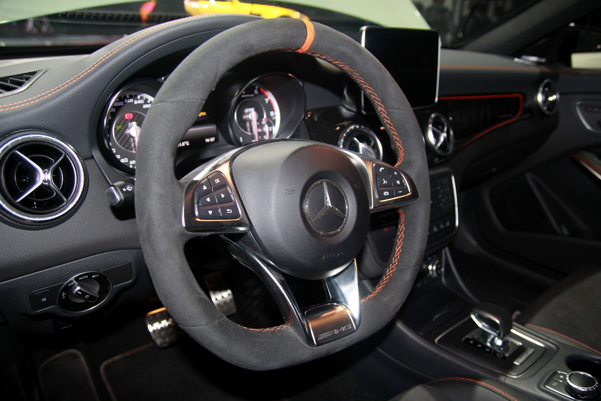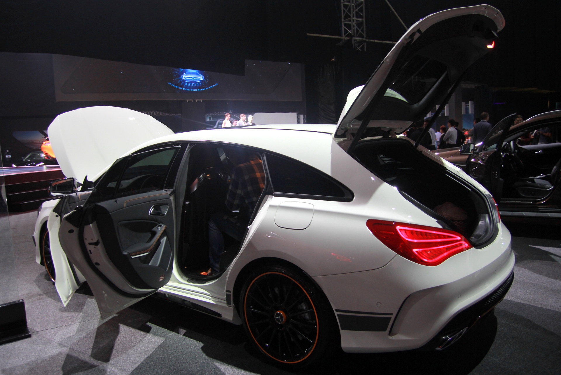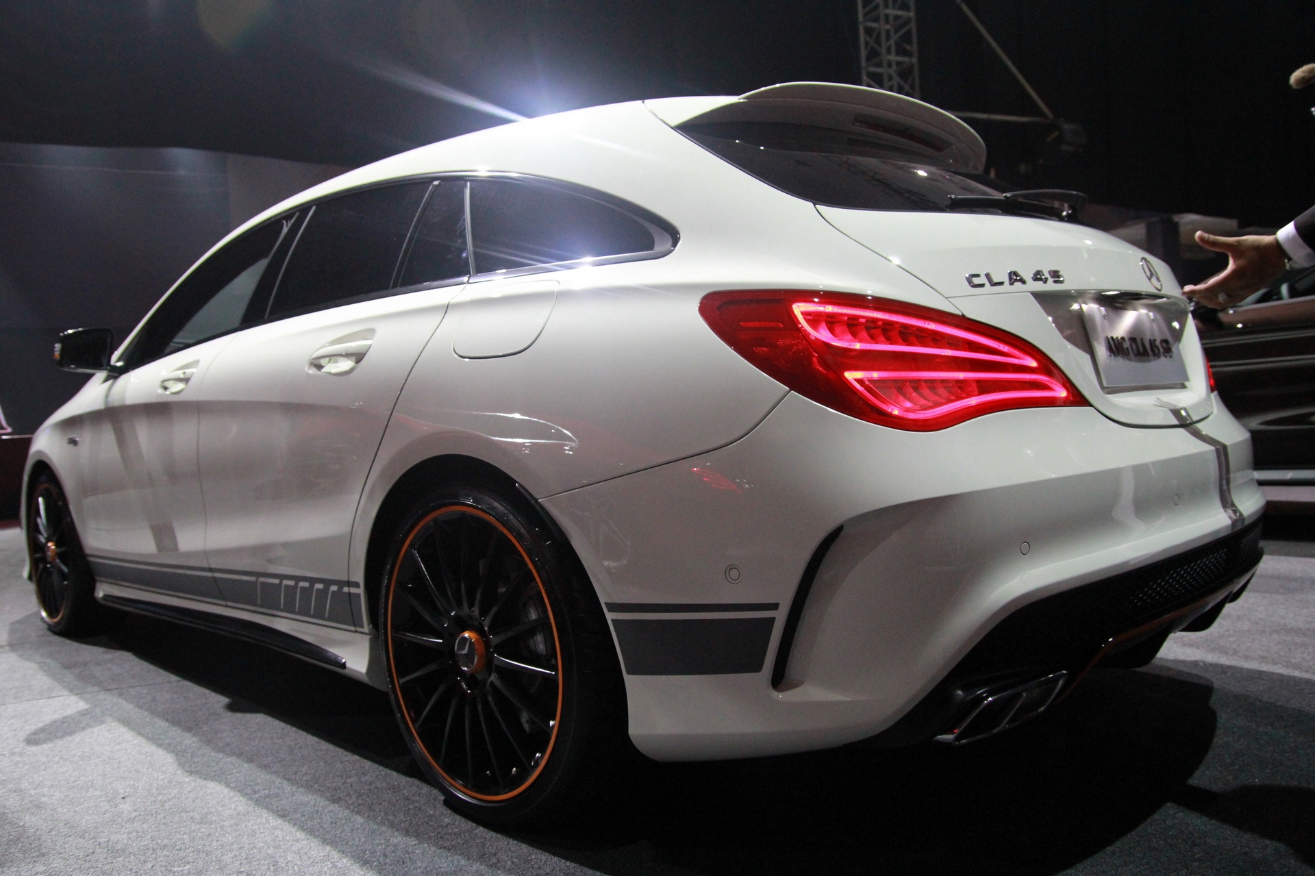 CLA 45 AMG Shooting Brake nhân được nhiều sự quan tâm của những người tham quan, bởi thiết kế xe vừa mang tính thể thao nhưng cũng không kém phần tiện dụng. Phiên bản giới thiệu trong lễ ra mắt có tên OrangeArt Edition, với tông màu cam nổi bật xuất hiện nhiều vị trí trên xe.