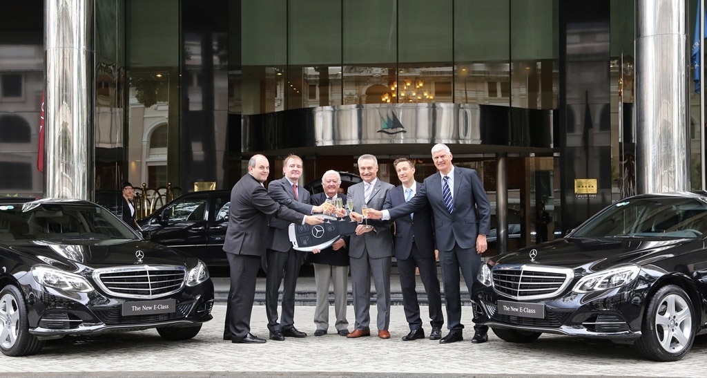 | Lễ bàn giao xe E-Class giữa Mercedes-Benz Việt Nam và khách sạn Caravelle. |