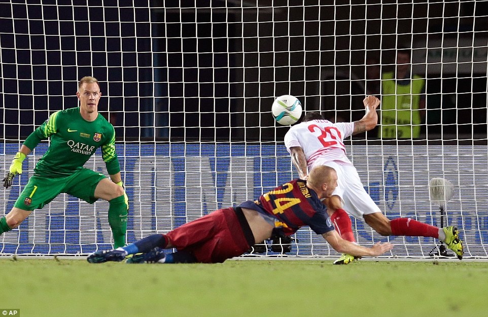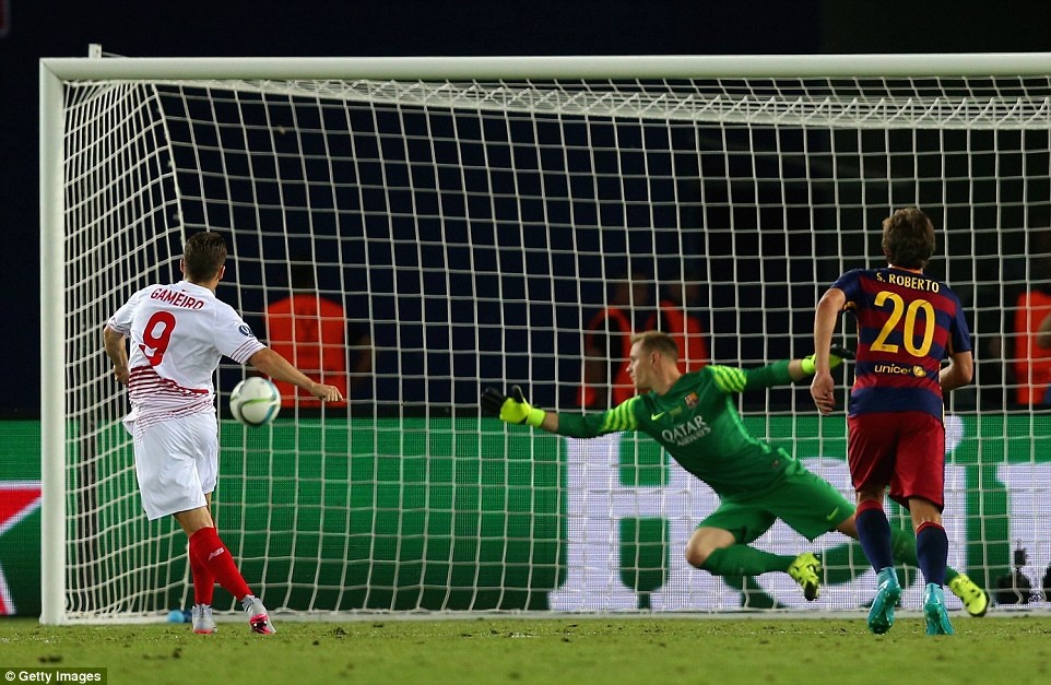 Tiền đạo khoác áo số 10 đóng góp 2 bàn giúp Barcelona đánh bại Sevilla 5-4 sau 120 phút ở trận tranh Siêu cúp châu Âu 2015 diễn ra lúc 1h45 ngày 12/8.
