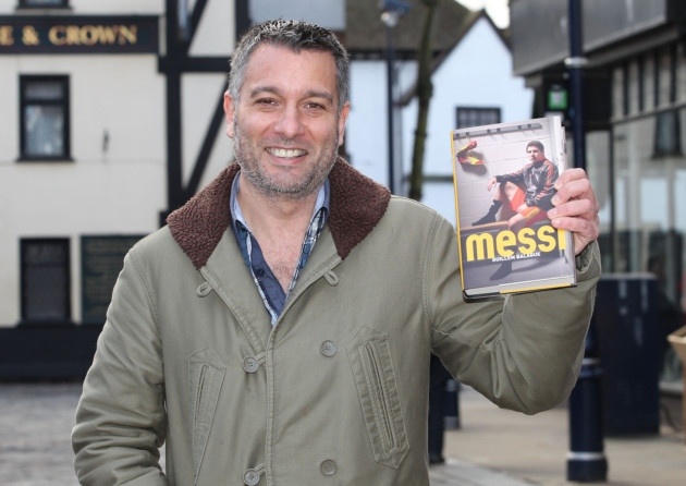| Chuyên gia Guillem Balague khoe cuốn sách viết về Messi. Ảnh: Marca. |
