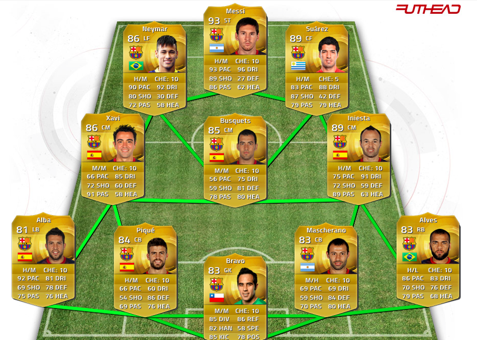 | Nhân dịp hãng EA Sports cho ra mắt tựa game bóng đá rất được chờ đợi FIFA 15, 8 ngôi sao Barcelona bao gồm: Lionel Messi, Neymar, Dani Alves, Gerard Pique, Munir, Ivan Rakitic, Marc Bartra và Jordi Alba được lựa chọn để chơi thử. Cuộc so tài diễn ra giữa 4 cặp đấu và cùng lấy Barca làm đội bóng thi đấu. |
