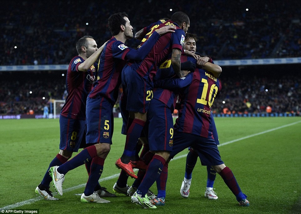 Đội hình thi đấu: Barcelona (4-3-3): Ter Stegen; Alba, Alves, Piqué, Mascherano; Rakitic (Xavi 77’), Busquets, Iniesta (Bartra 87’); Suárez, Messi, Neymar. Atletico(4-4-2): Oblak; Juanfran, Miranda, Godin, Siqueira; Mario Suarez, Gabi (Jimenez 88’), Koke, Arda; Griezmann (Garcia 66’), Torres (Mandzukic 46’).