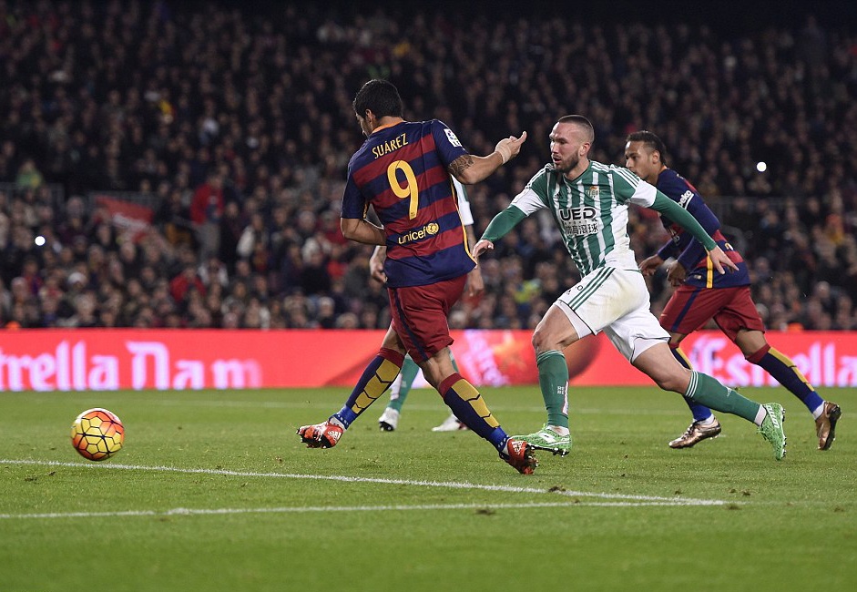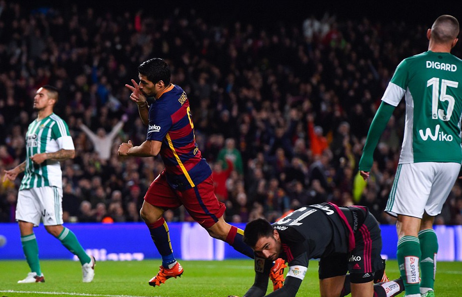 Cú đúp vào lưới Betis giúp Suarez vươn lên dẫn đầu danh sách Vua phá lưới La Liga - Pichichi - với 15 bàn thắng, nhiều hơn Cristiano Ronaldo và Neymar 1 bàn.