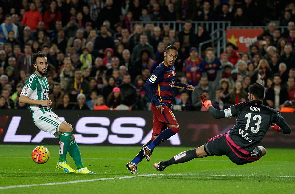 Tổng hợp trận đấu: Barcelona 4-0 Betis Nhờ phong độ ấn tượng của bộ ba Messi - Neymar - Suarez, Barca dễ dàng đánh bại Betis với tỷ số đậm để trở lại ngôi đầu La Liga.