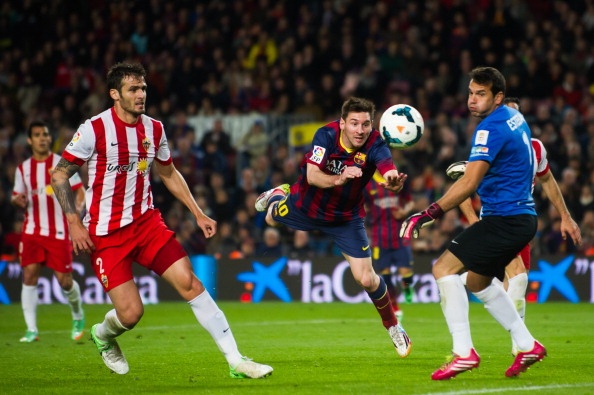 | Almeria bất lực trong việc ngăn cản các cầu thủ Barca ghi bàn. |