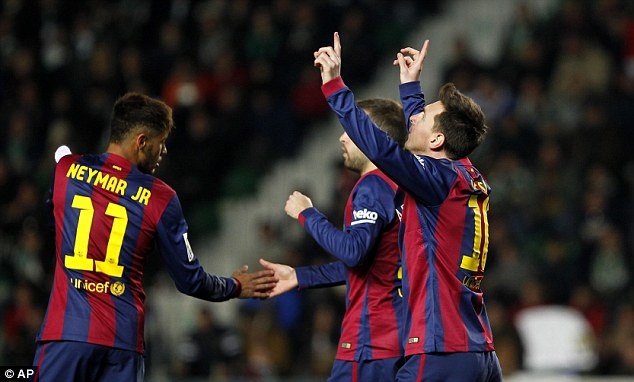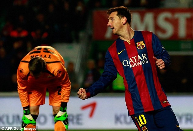 Messi đang thể hiện phong độ đáng sợ trong năm mới 2015. Đây là trận thứ 5 liên tiếp siêu sao người Argentina ghi bàn cho đội bóng xứ Catalunya.