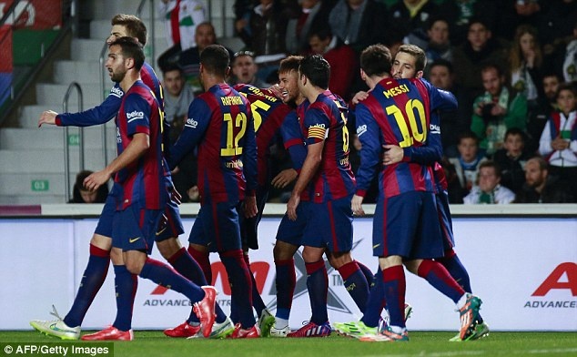 Đội hình thi đấu: Elche (4-4-2): Tyton; Suarez, Roco, Pelegrin, Cisma (Albacar Gallego 61’); Gonzalez Morales (Lomban 70’), Pasalic, Romero, Fajr; Esclapez, De Jesus. Barcelona (4-3-3): Bravo; Montoya, Pique, Bartra, Alba (Busquets 70’); Xavi (Sergi 72’), Mascherano (Adriano 70’), Rafinha; Pedro, Messi, Neymar.