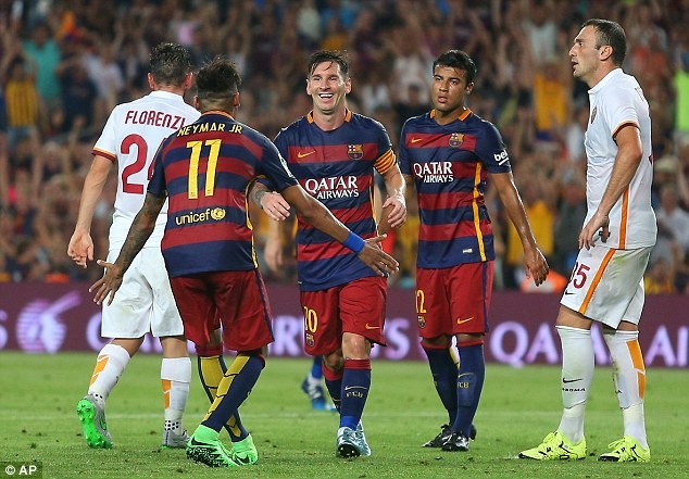 Lionel Messi lần đầu chơi cho Barcelona hè này trong trận đánh bại AS Roma 3-0. Anh chỉ phải nhận thẻ vàng sau hành động mất kiềm chế với Mapou Yanga-Mbiwa bên phía AS Roma.