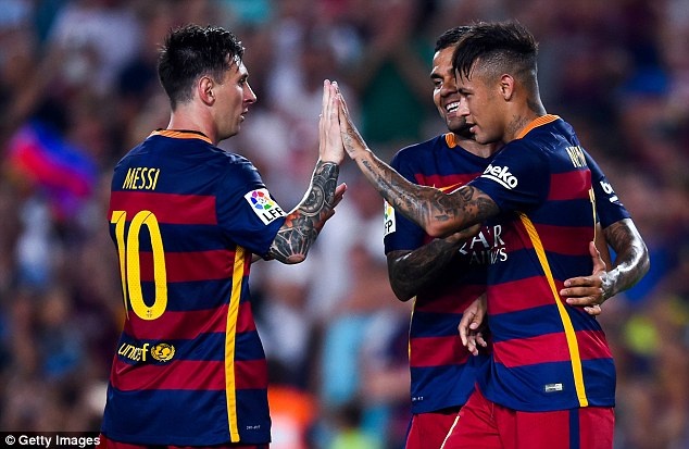 Cặp tiền đạo của Barcelona ghi bàn trong trận đầu tiên đá cặp cùng nhau ở hè 2015.